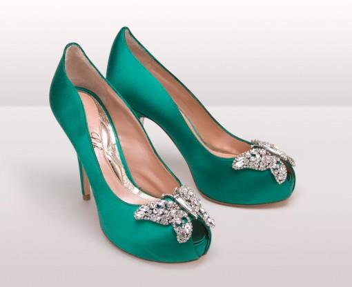 Last week Pantone revealed Emerald as the color of the year for 2013 from their Spring 2013 Color Forecast. This color is a rather vibrant and gorgeous green with a touch of blue. What better way to incorporate this dazzling bright color in your wedding than to sport a pair of killer emerald shoes. As a very special edition of